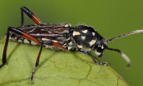 脊胸天牛(Rhytidodera bowringii White)屬鞘翅目天???。在我國和緬甸、印度尼西亞、印度腰果植區(qū)發(fā)生,是我國重要的腰果害蟲。除為害腰果外,還為害芒果、人面子等。脊胸天牛幼蟲蛀害腰果枝干,造成枝干枯死或折斷,使腰果植株長勢減弱,嚴重時可導致植株死亡。