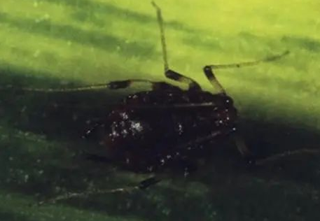 香蕉交脈蚜分為無翅蚜和有翅蚜兩種類型。無翅蚜體卵圓形,長0.8?1.6mm,紅褐色至黑色,額瘤明顯,尾片圓錐形,具瓦紋。有翅蚜體長卵形,長約1.7mm,頭、胸黑色,腹部紅褐色至黑色,頭頂兩側(cè)額瘤明顯。復(fù)眼紅棕色,觸角、腹管和足的腿節(jié)、脛節(jié)的前端呈暗紅色,觸角6節(jié),并在其上有若干個圓形的感覺孔,腹管圓筒形,前翅徑脈與中脈有段交會(故稱“交脈”),形成一個四邊形閉室,翅脈附近有許多黑色小點(diǎn)。前翅大于后翅。孤雌生殖,卵胎生,若蚜要經(jīng)過4個齡期以后,才變成有翅或無翅成蟲。