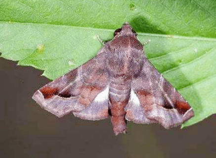 成蟲(chóng):體長(zhǎng)9?11mm,翅展19?23mm。頭部棕褐色,額區(qū)白色,下唇須前伸,黑色,末端灰白色。雄蛾觸角基部櫛齒狀,約占觸角全長(zhǎng)的1/2,端部絲狀。雌蛾觸角絲狀。體背面黑褐色,胸、腹交界處有一白色“八”字形紋。腹面灰白色,腹部各節(jié)兩側(cè)均有1個(gè)白色小斑點(diǎn)。前翅茶褐色,基橫線(xiàn)以?xún)?nèi)黑褐色,猶如一個(gè)黑褐色的大三角形;后翅灰褐色,外緣黑色,近臀角有一白色短橫紋。